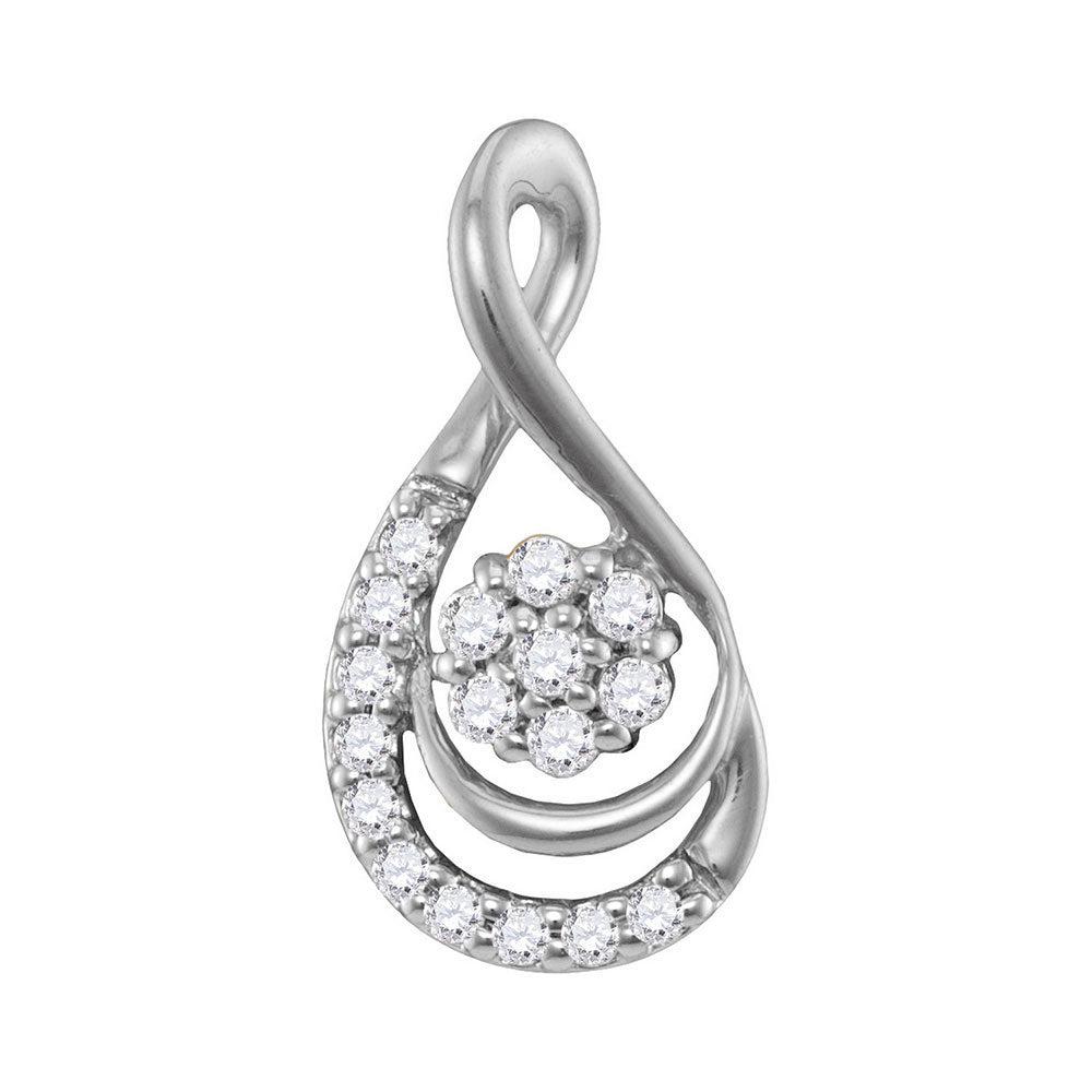 10kt White Gold Womens Round Diamond Flower Cluster Teardrop Pendant 1/10 Cttw