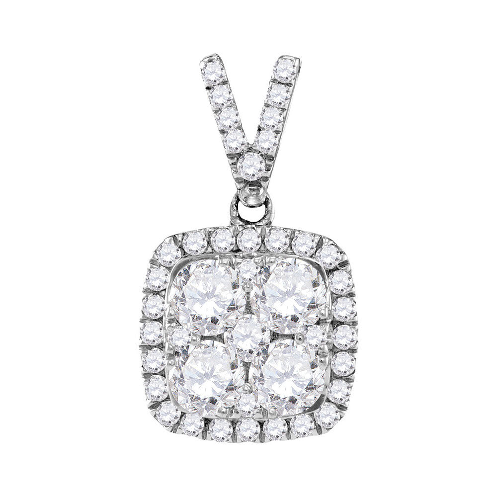 10kt White Gold Womens Round Diamond Square Cluster Pendant 1-1/3 Cttw