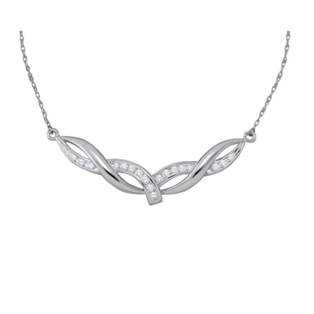 10kt White Gold Womens Round Diamond Twist Bar Fashion Pendant Necklace 1/3 Cttw