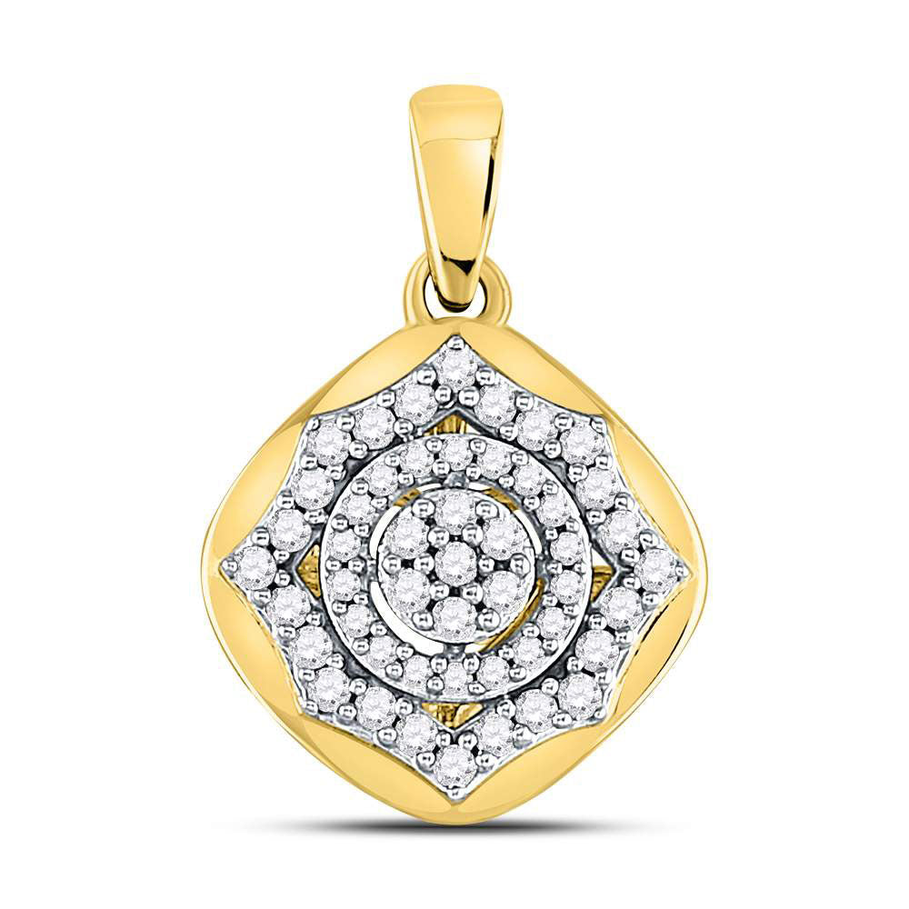 10kt Yellow Gold Womens Round Diamond Cluster Pendant 1/5 Cttw