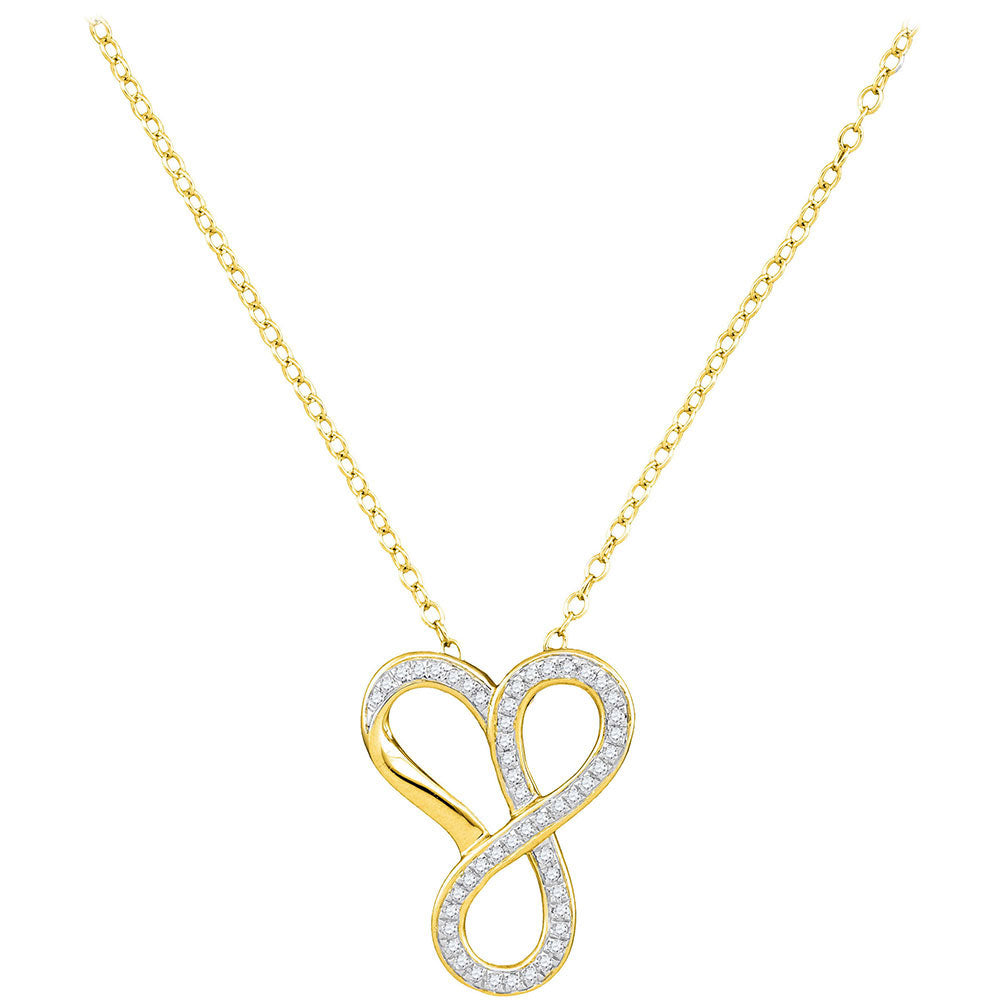 10kt Yellow Gold Womens Round Diamond Infinity Heart Pendant Necklace 1/6 Cttw