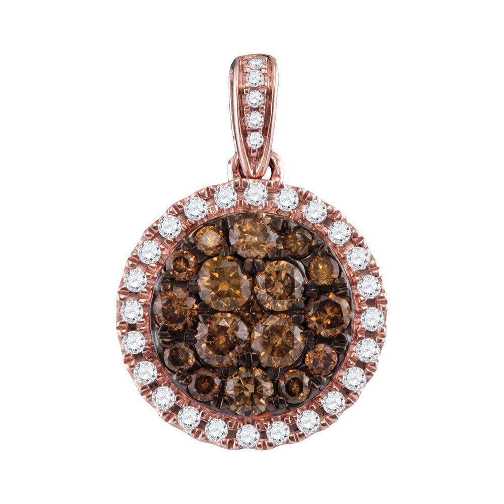 14kt Rose Gold Womens Round Brown Diamond Circle Cluster Pendant 1 Cttw