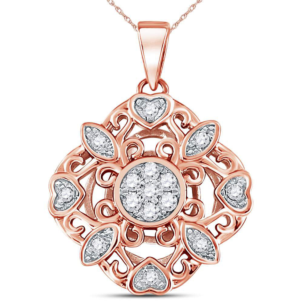 14kt Rose Gold Womens Round Diamond Diagonal Square Heart Cluster Pendant 1/4 Cttw