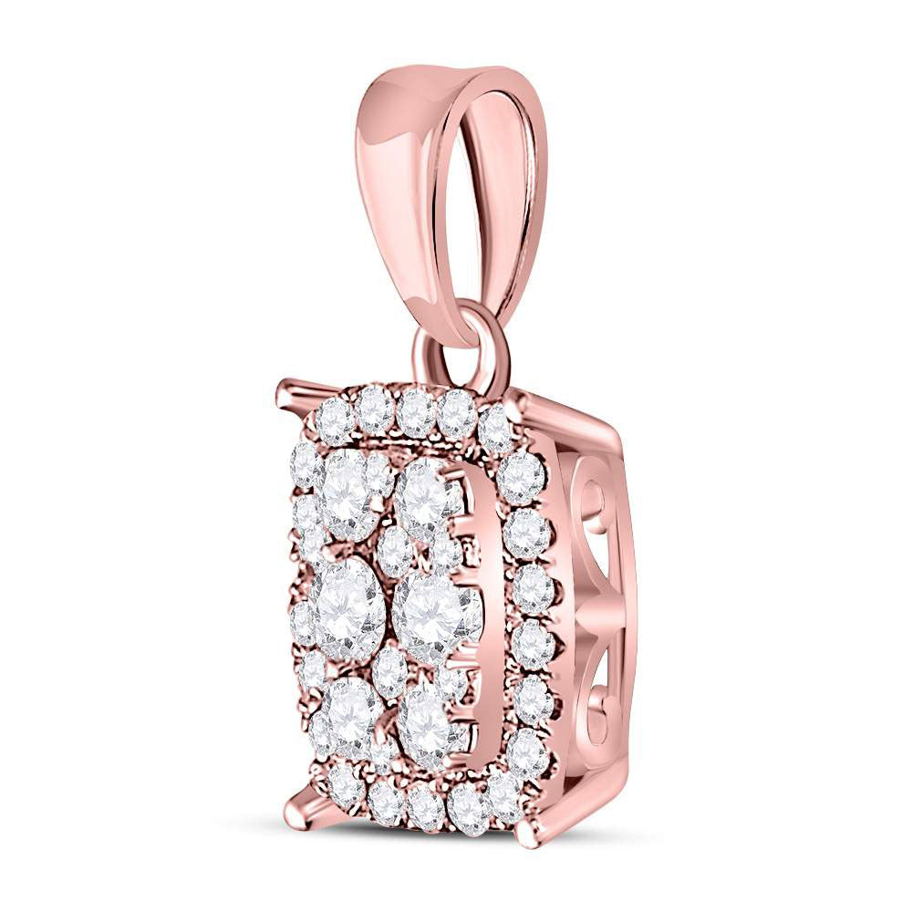 14kt Rose Gold Womens Round Diamond Rectangle Cluster Pendant 1/4 Cttw