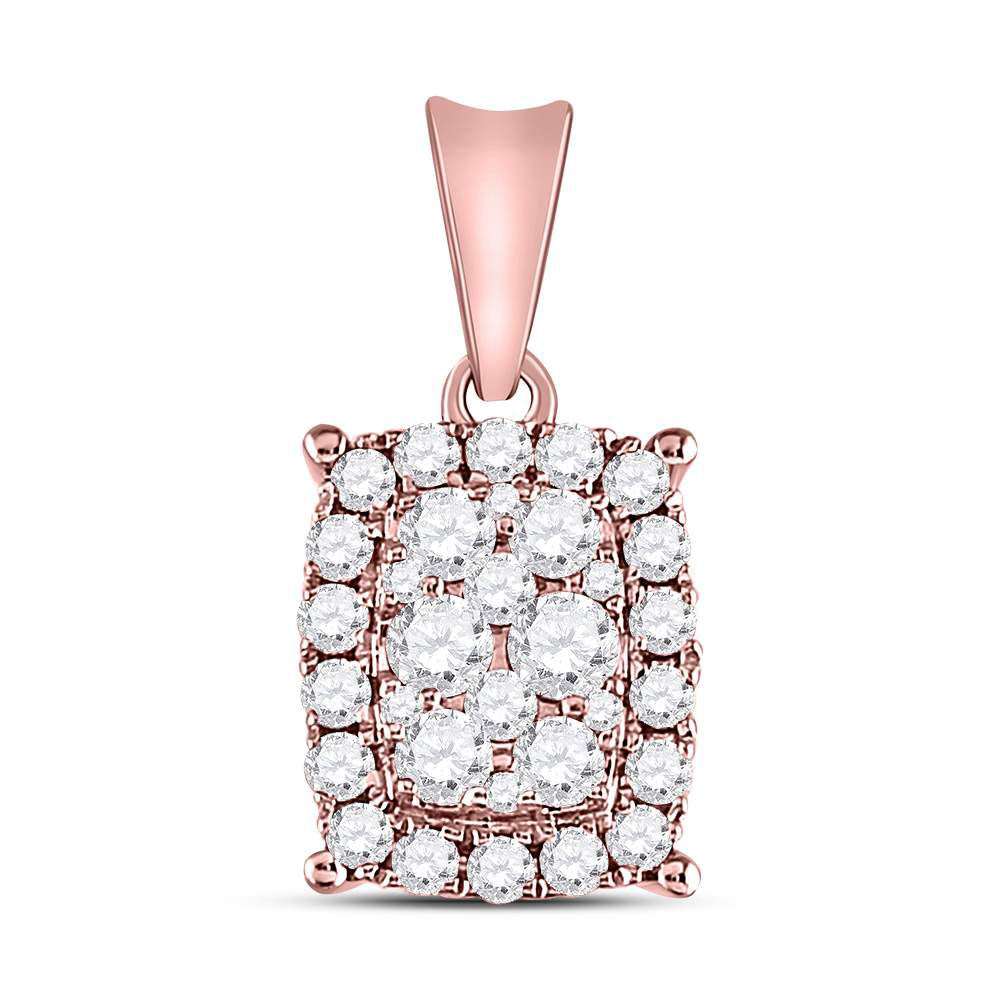 14kt Rose Gold Womens Round Diamond Rectangular Cluster Pendant 1/2 Cttw