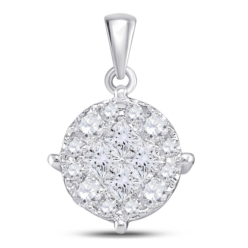 14kt White Gold Womens Princess Diamond Fashion Cluster Pendant 1/2 Cttw