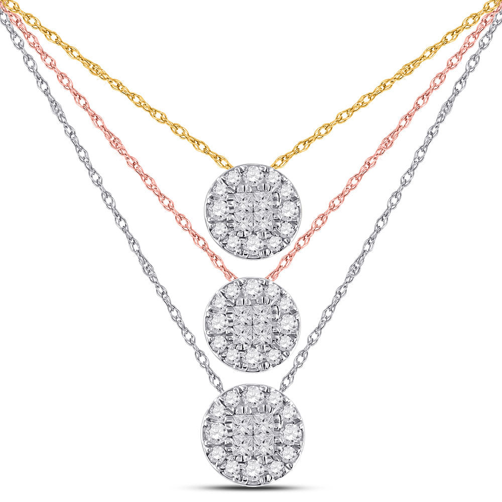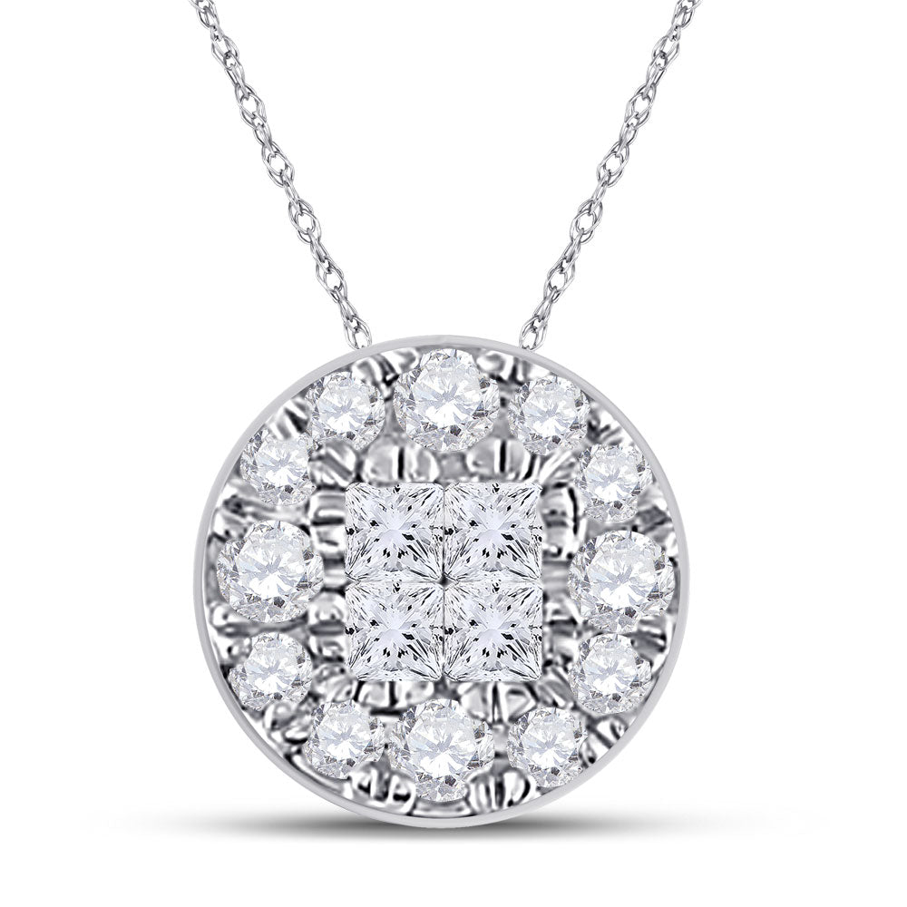 14kt White Gold Womens Princess Diamond Fashion Cluster Pendant 1/4 Cttw