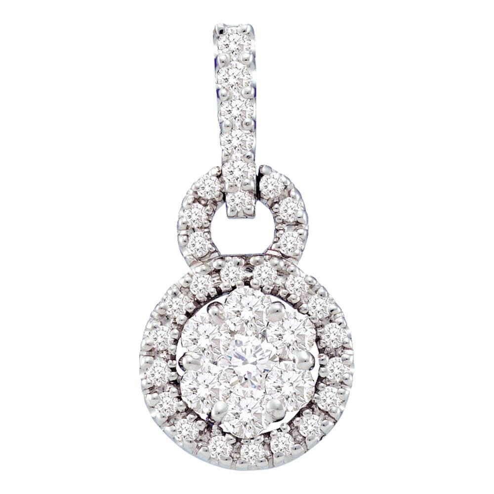 14kt White Gold Womens Round Diamond Circle Frame Flower Cluster Pendant 1/2 Cttw