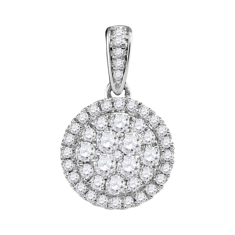 14kt White Gold Womens Round Diamond Concentric Circle Frame Cluster Pendant 1/2 Cttw