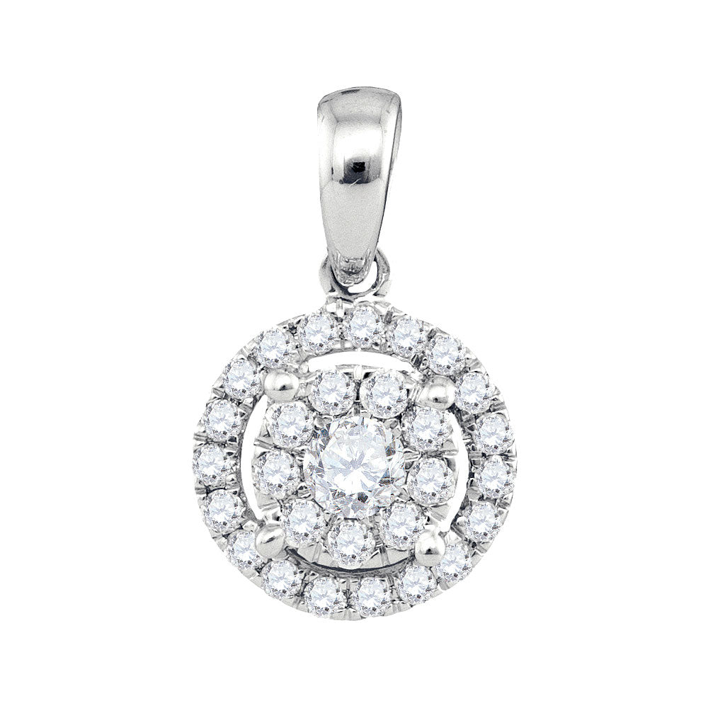 14kt White Gold Womens Round Diamond Concentric Circle Frame Cluster Pendant 1/3 Cttw