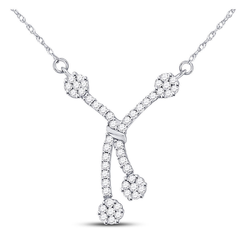 14kt White Gold Womens Round Diamond Dangle Flower Cluster Fashion Necklace 1/2 Cttw