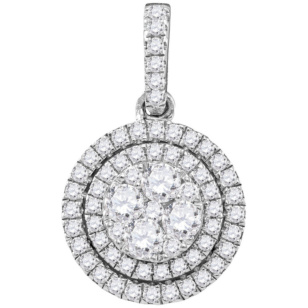 14kt White Gold Womens Round Diamond Double Frame Flower Cluster Pendant 7/8 Cttw
