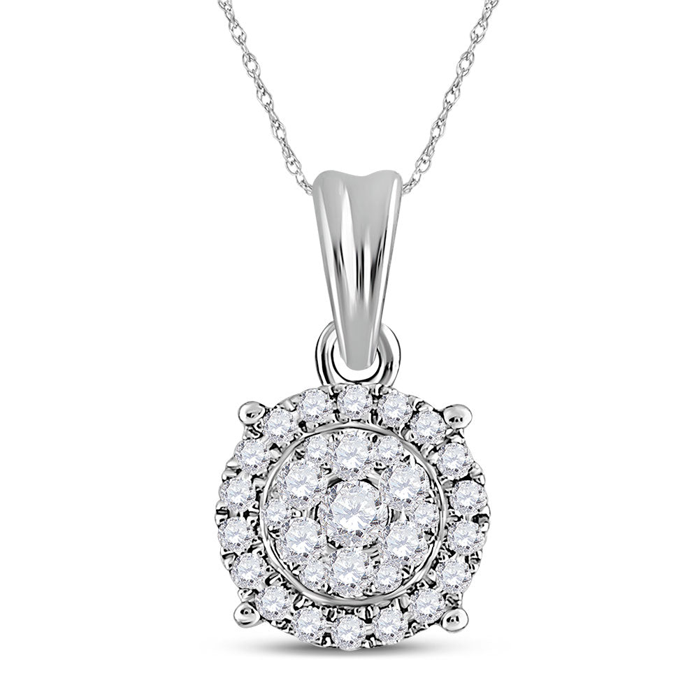 14kt White Gold Womens Round Diamond Halo Cluster Pendant 1/4 Cttw