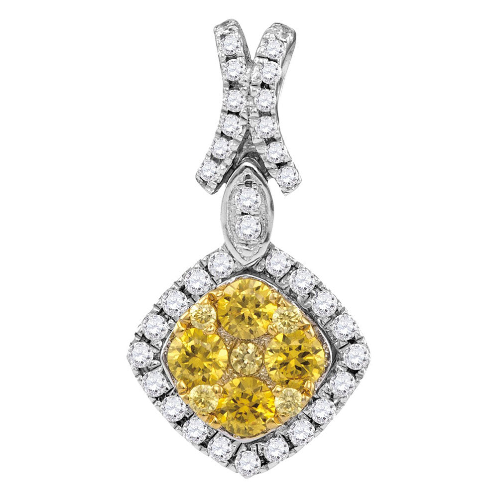 14kt White Gold Womens Round Yellow Diamond Diagonal Square Frame Cluster Pendant 1 Cttw