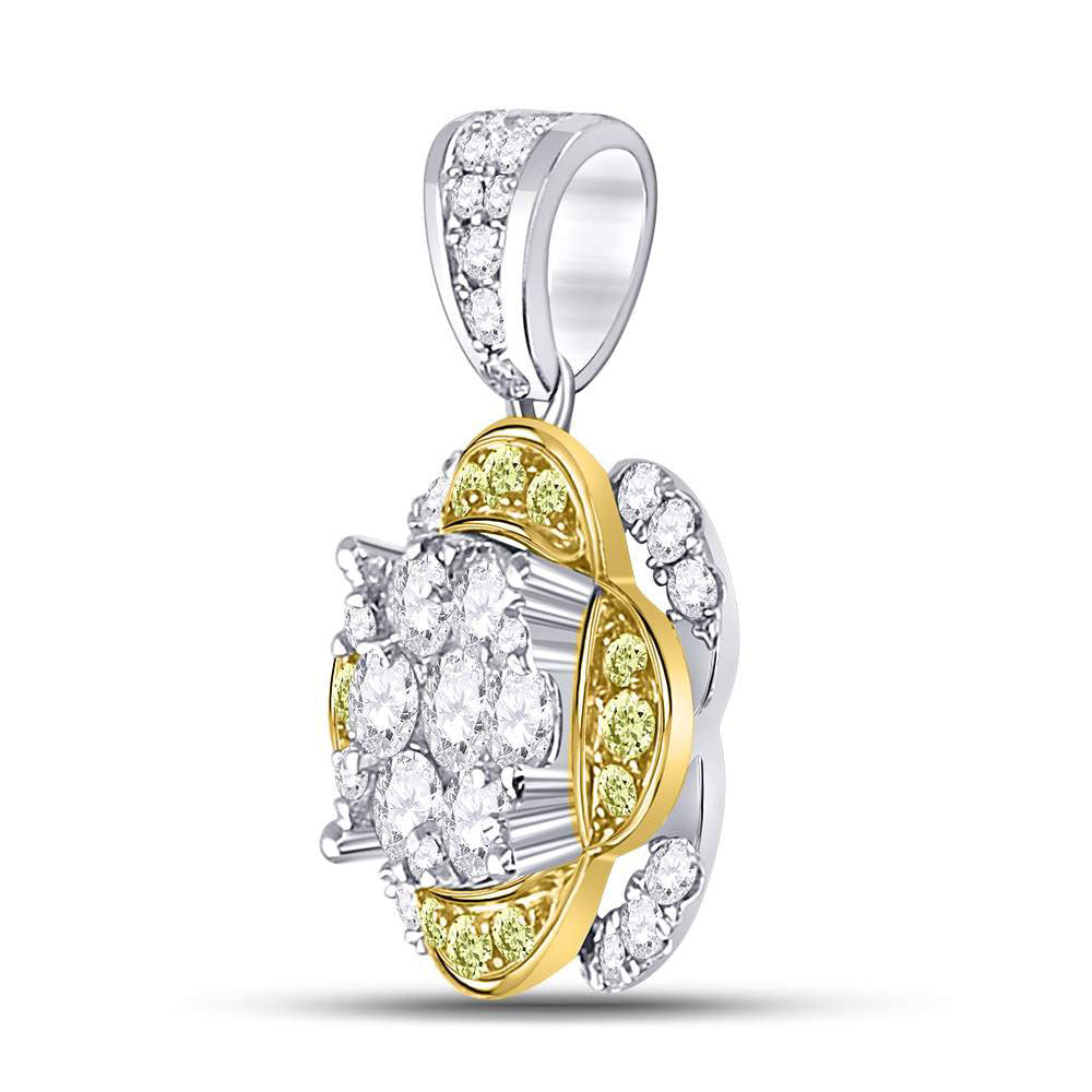 14kt White Gold Womens Round Yellow Diamond Flower Cluster Pendant 1 Cttw