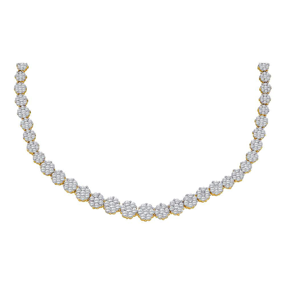 14kt Yellow Gold Womens Round Diamond Flower Cluster Luxury Necklace 10 Cttw