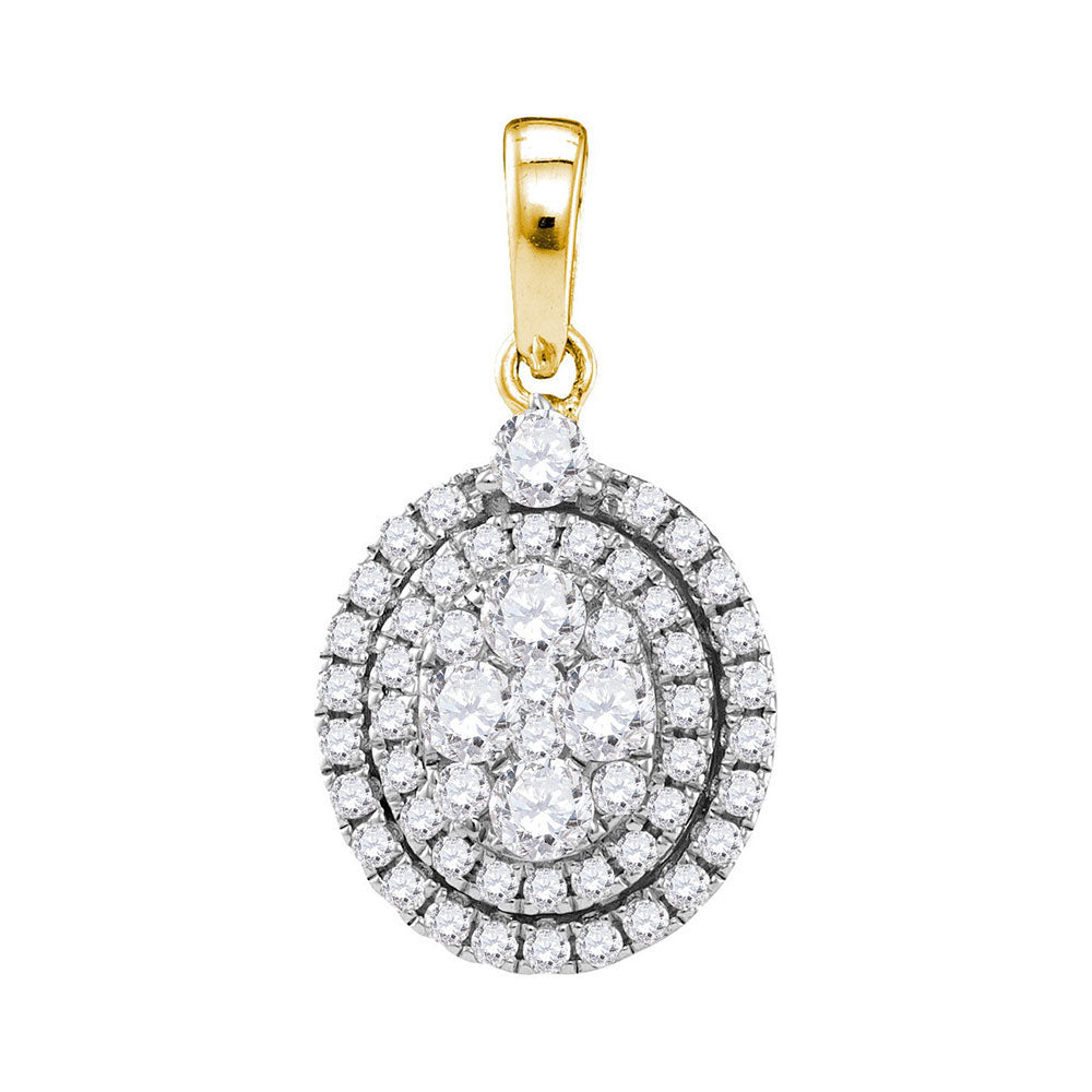 14kt Yellow Gold Womens Round Diamond Oval Cluster Pendant 1 Cttw