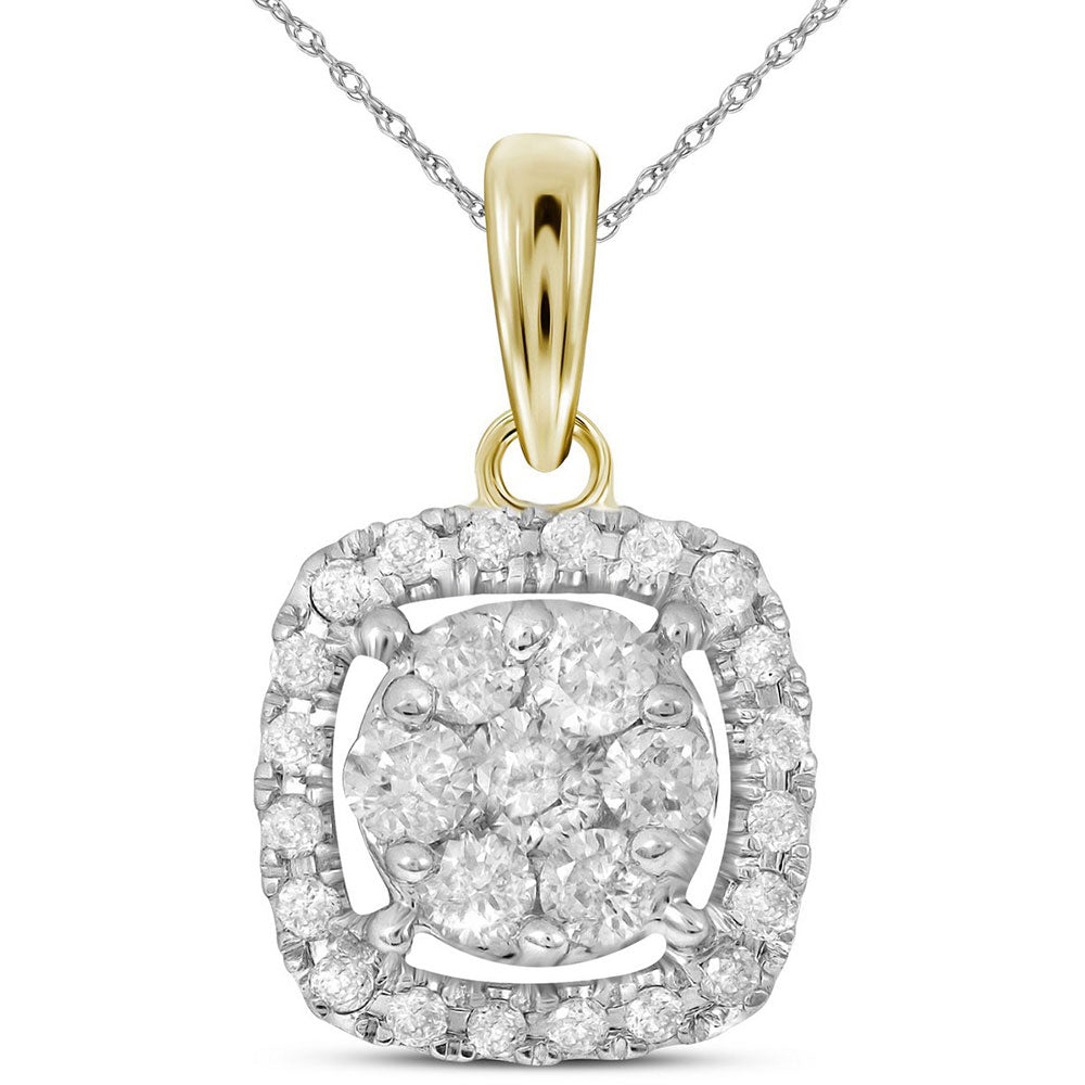 14kt Yellow Gold Womens Round Diamond Square Cluster Pendant 1/4 Cttw