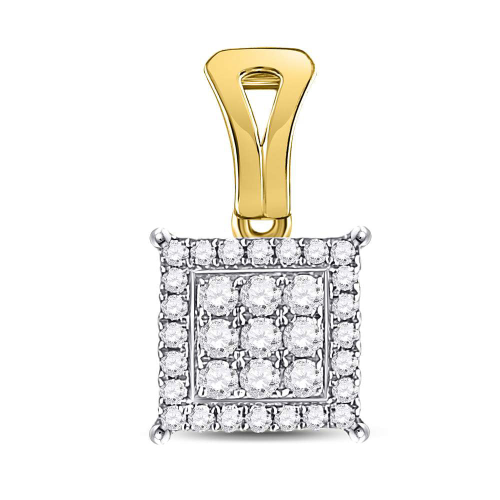 14kt Yellow Gold Womens Round Diamond Square Cluster Pendant 1/4 Cttw
